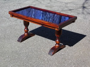 Vintage Antique Art Deco Cobalt Blue Mirror Glass Coffee Table